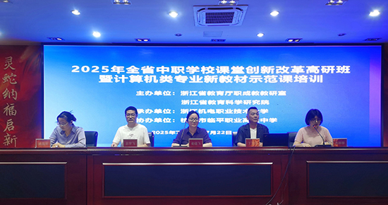 為全面落實(shí)浙江省新教材課程改革部署,促進(jìn)中職計(jì)算機(jī)類專業(yè)課堂教學(xué)革新,強(qiáng)化新教材應(yīng)用效能,2025年7月19日,全省中職學(xué)校課堂創(chuàng)新改革高研班暨計(jì)算機(jī)類專業(yè)新教材《計(jì)算機(jī)網(wǎng)絡(luò)技術(shù)基礎(chǔ)》示范課培訓(xùn)在臨平職高正式揭幕,開展為期四天的研習(xí)活動(dòng)。本次培訓(xùn)由浙江省教育廳職成教教研室與浙江省教育科學(xué)研究院共同主辦,浙江機(jī)電職業(yè)技術(shù)大學(xué)承辦,杭州市臨平職業(yè)高級(jí)中學(xué)協(xié)辦,來自全省各地市百余名計(jì)算機(jī)專業(yè)帶頭人、負(fù)責(zé)人及骨干教師參與。
