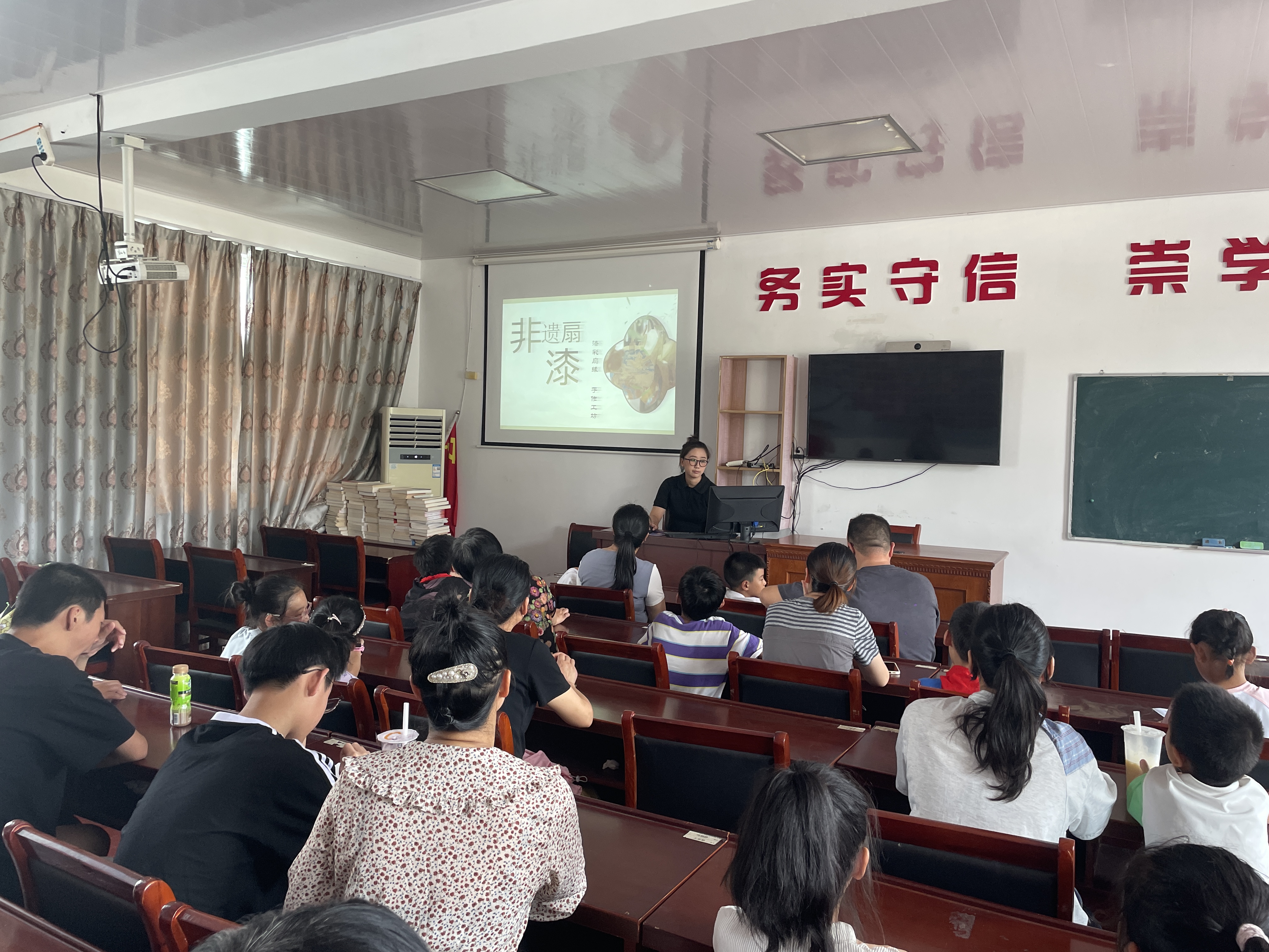 活動(dòng)伊始,志愿者沈老師為家長(zhǎng)和孩子們帶來(lái)了一場(chǎng)生動(dòng)的扇文化講座。從商周時(shí)期的“障扇”雛形,到明清折扇的盛行,再到不同材質(zhì)扇子的特色,沈老師娓娓道來(lái)。她重點(diǎn)聚焦于漆扇工藝的獨(dú)特魅力和其作為重要非物質(zhì)文化遺產(chǎn)的傳承價(jià)值,通過(guò)圖文并茂的講解,不僅讓孩子們,也讓家長(zhǎng)們深刻體會(huì)到小小扇面背后蘊(yùn)含的深厚文化底蘊(yùn),激發(fā)了對(duì)傳統(tǒng)工藝的保護(hù)與傳承意識(shí)。