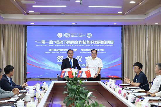 7月30日,“一帶一路”框架下南南合作技能開發網絡項目暨柬埔寨學員來浙培訓活動在浙江建設技師學院啟動。柬埔寨勞動和職業培訓部、柬埔寨菩薩省理工學院、國際勞工組織“中國合作計劃”項目組以及浙江省人社廳和浙江建設技師學院代表參加了開班儀式。