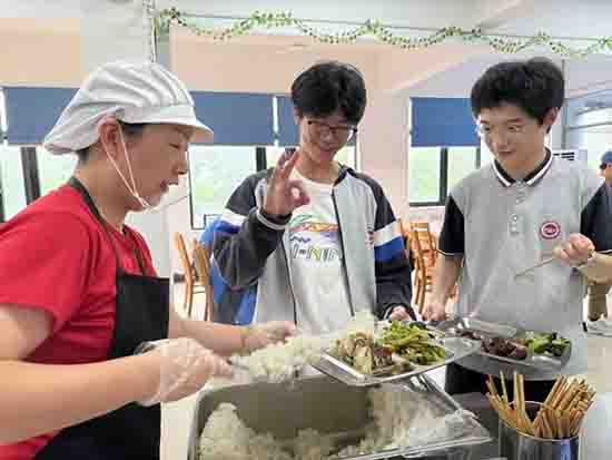 舌尖上的能量: 食堂精心準(zhǔn)備了美味可口、營養(yǎng)均衡的早餐與午餐。熱氣騰騰的狀元糕、寓意“包中”的粽子、金燦燦的煎餃……每一口都是滿滿的能量與祝福!