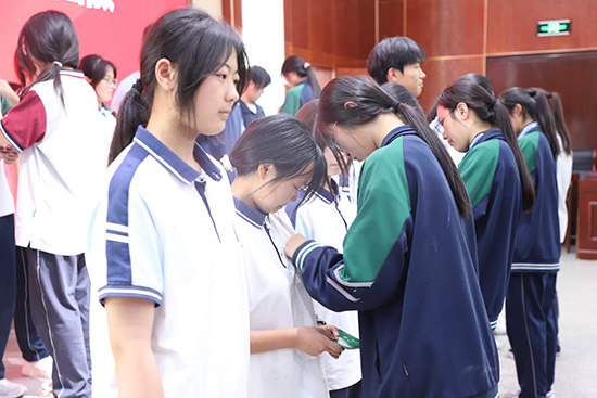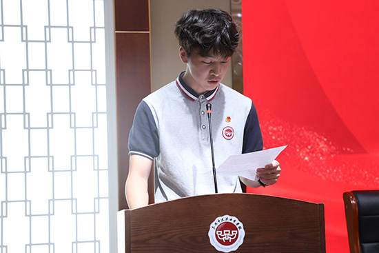 代表發(fā)言結(jié)束后,劉葉海副校長為第26期業(yè)余黨校學員頒發(fā)結(jié)業(yè)證書。老團員代表為新團員佩戴團徽、頒發(fā)團員證,熠熠生輝的團徽,承載著組織的期望與重托,象征著責任與擔當?shù)膫鬟f。