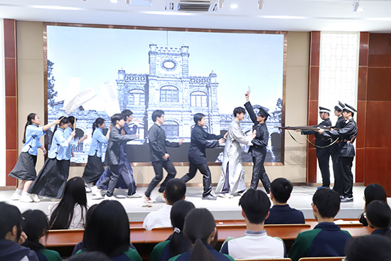 緊接著,全體師生一同沉浸式觀看了由校學生會干部出演的紅色話劇《破曉》,在跌宕起伏的劇情中重溫革命先輩的奮斗歷程,于震撼人心的演繹中深刻體悟紅色精神的時代內(nèi)涵。