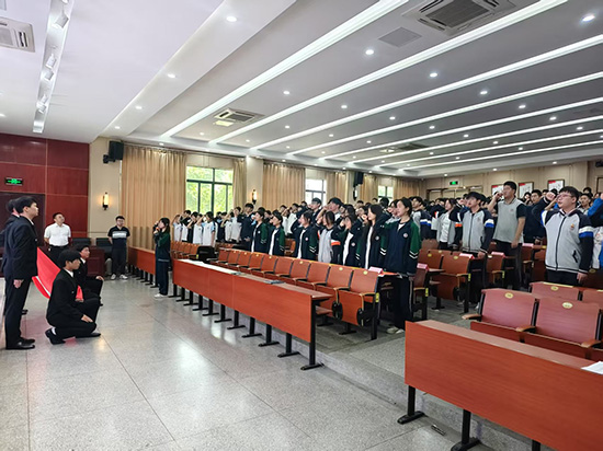 6月5日,嘉興市建筑工業(yè)學校于鼎建大講堂隆重舉行第26期業(yè)余黨校培訓班結(jié)業(yè)典禮暨2024學年第二學期新團員入團儀式。本次活動由校團委黃利婷老師主持。校黨委委員、副校長劉葉海,學生處副主任、校團委負責人張曉紅,各院系團總支書記、業(yè)余黨校結(jié)業(yè)學員以及新團員等近兩百余名師生齊聚一堂共同見證這場青春與信仰交織的盛典。