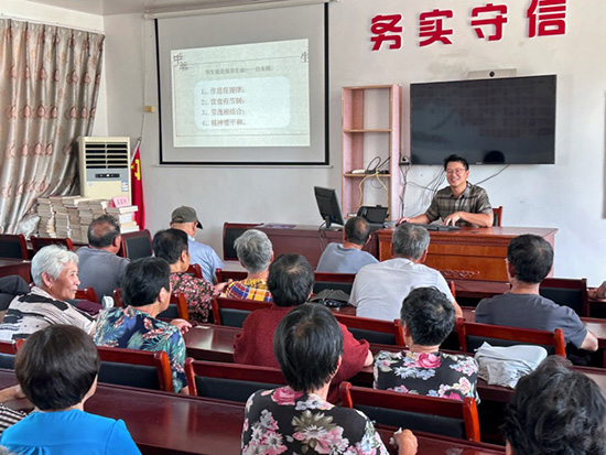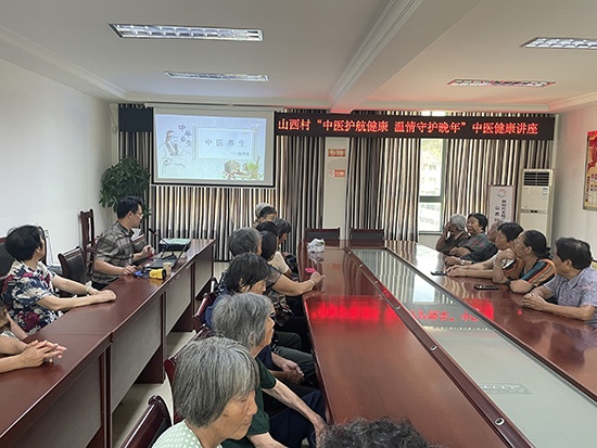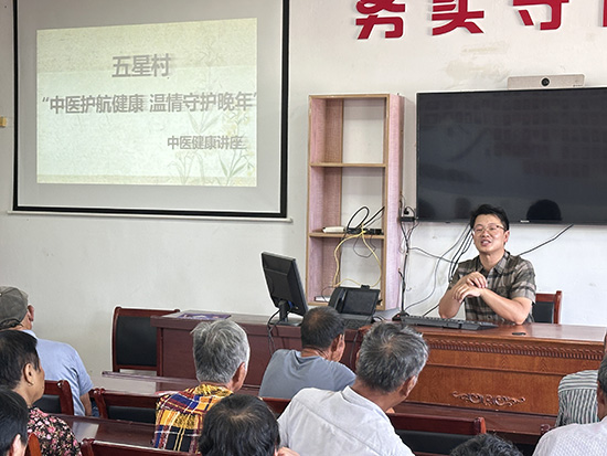 翁主任深耕臨床二十載,尤擅老年慢病調理。講座伊始,他先以“人與天地相參”的中醫整體觀破題,隨后圍繞“因人、因時、因地”三因制宜原則,將深奧的中醫理論轉化為老年人聽得懂、記得住、用得上的“保健妙招”。接著聚焦中醫養生理念,結合老年人身體特點和常見健康問題,深入淺出地講解了四季養生要點、飲食調理原則及日常運動注意事項等實用知識。特別針對立秋時節,他建議老人們飲食宜注重滋陰潤肺,可適當增加梨、百合、銀耳等食物的攝入;同時強調了良好心態和規律作息對健康的關鍵作用。