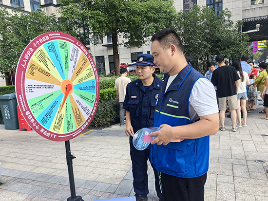8月9日傍晚,杭州市濱江區浦沿街道巖大房社區云杉郡小區噴泉廣場人聲鼎沸。外賣騎手小王剛結束配送,便匆匆趕來。在“反詐套圈”游戲攤位前,他與小區老住戶李阿姨相鄰而站,一邊瞄準目標,一邊聽著街道反詐中心、浦沿派出所工作人員講解套中物品上的防詐知識——“阿姨您看,‘刷單返利是詐騙’,這說的就是我們常遇到的陷阱?。?rdquo;小王笑著分享自己的經歷。歡聲笑語中,一道無形的鄰里之橋悄然架起。