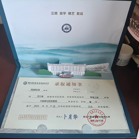 與吉朵以烏一同圓夢大學的,還有會計專業的阿都拉洛——這位彝族姑娘順利被浙江廣廈建設職業技術大學大數據與財務管理專業錄取。“考前的焦慮,考后的緊張,出成績前的忐忑不安,現在終于拿到了錄取通知書,這就是努力付出最好的回報。在大學期間我想繼續好好學習,努力考證。”拉洛在給母校的留言中深情地說到,“感謝寧波給了我看世界的窗口,更給了我改變命運的鑰匙。也非常感謝一直以來幫助關心我的老師和叔叔阿姨們。未來我還想留在北侖工作,用專業知識回報這座溫暖的城市。”