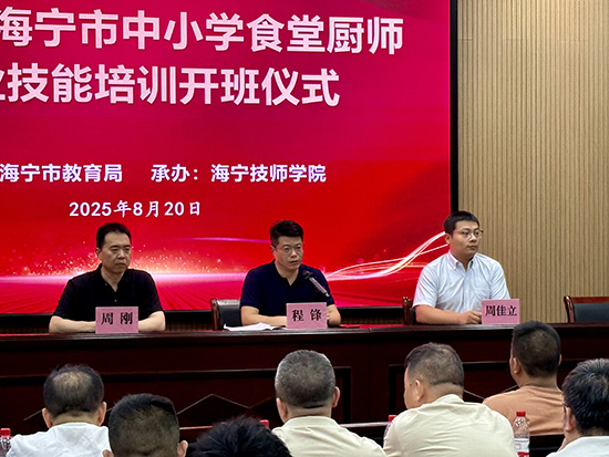 8月20日上午,2025年海寧市中小學食堂廚師專業技能培訓班(第五期)在海寧技師學院正式拉開帷幕。本次培訓為期5天,吸引了來自全市各中小學及相關餐飲單位的67名一線廚師參與。他們齊聚一堂,共同開啟一場以“技能提升、安全護航、營養優化”為核心目標的專業學習與交流的新征程。