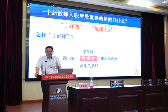 長興縣教育局黨委書記、局長欽國強開講第一課,他和新教師積極互動,圍繞“為什么當老師”這個問題,讓新教師再次明晰自我的職業選擇和角色定位,樹立育人初心。又從“你認為自己有哪些優點適合于從事教師這個行業”“你認為目前還有哪些不足”“你準備成為怎樣的老師”等問題深入探討,在全場的思維碰撞中,大家對“教育”“教學”這兩個詞有了更深度的解讀和深刻的思考。長興縣教育局黨委副書記雷曉財進行《新教師的師德啟航——奠定職業生涯的道德基礎》的師德專題講座,他從教師要遵守的基本行為準則、合理把握教育懲戒的規則、師德師風事件處置原則三方面,進一步強化了新教師要恪守師德,守牢底線不觸紅線。
