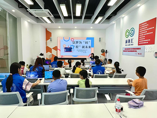 7月,第一期夏令營(yíng)面向 4-6 年級(jí)的學(xué)生展開(kāi),為期兩周的課程內(nèi)容精彩紛呈。其中,與浙江機(jī)電職業(yè)技術(shù)大學(xué) “以夢(mèng)為碼” 志愿服務(wù)團(tuán)隊(duì)聯(lián)合開(kāi)展的趣味編程課,成為了孩子們眼中的熱門(mén)課程。志愿者們通過(guò)生動(dòng)有趣的教學(xué)方式,將原本晦澀難懂的編程知識(shí)融入趣味益智游戲之中,帶領(lǐng)孩子們走進(jìn)奇妙的編程世界。在課堂上,孩子們積極思考、動(dòng)手實(shí)踐,在編程的過(guò)程中不斷提升邏輯思維與動(dòng)手操作能力,不少孩子表示,通過(guò)這次課程,對(duì)編程產(chǎn)生了濃厚的興趣。