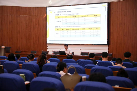 校黨委委員、副校長費永軍基于2024學年高考(升學)、期末市統考及2025年省“面向人人”考試數據的多維度分析,指出學校成績雖較往年有較大提升,但在全省、全市范圍內仍有進步空間。他明確新學年四項重點任務:優化師資隊伍建設、完善分層分類教學、強化技能大賽備賽、健全制度保障體系,并強調全體教師要大力弘揚教育家精神,恪守育人初心、激發學生潛能,真正“讓每一個孩子都被看見”。