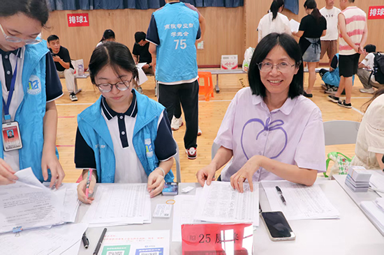 早晨7時30分開始,新生與家長陸續抵達學校。學校黨員同志們以身作則,早早來到迎新現場,向每一位遠道而來的新生送上最誠摯的歡迎與祝福。行健館作為報到主會場,早已布置妥當,各班班主任和學生志愿者們提前到崗,以飽滿的精神狀態迎接新生的到來。校園交通管理有條不紊,學校車輛引導組在校內各路口引導車輛即停即走,全力保障校園交通暢通。學生宿舍同樣忙碌而溫暖,老師與學生志愿者協助新生辦理入住,主動幫助搬運物品,讓新生初入“家”門便感受到濃濃的歸屬感。
