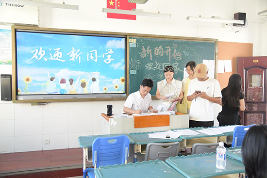 班主任老師們是新生入校后的“第一任導師”,“歡迎你,新同學!”在各個新生教室里,班主任老師們早已做好了充分的準備。有的班級黑板上寫滿了溫馨的歡迎詞,有的班級新增了勵志的迎新展板,有的班級貼心地準備了小禮物或專業特色產品,讓整個教室充滿了家的溫暖。班主任們耐心地為新生辦理報到手續,核驗資料,介紹開學注意事項、寢室分布等,面對新生和家長們的各種疑問,班主任們不厭其煩地一一解答,努力消除他們的顧慮。一句句叮嚀,一聲聲囑托,飽含著班主任對新生的深切期望與無私關愛。