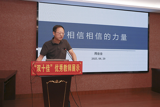 九位“雙十佳”優秀教師代表中既有校級領導,也有中層干部,更有一線教師。他們依次登臺,作了精彩紛呈的先進事跡分享。他們不僅展現出卓越的工作智慧與教育溫度,更傳遞出砥礪前行、躬耕教壇的榜樣力量。