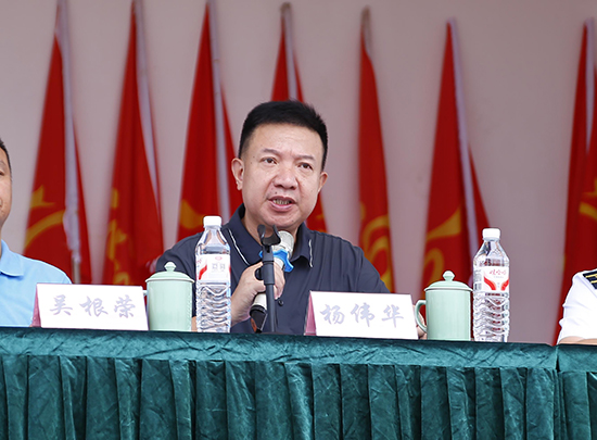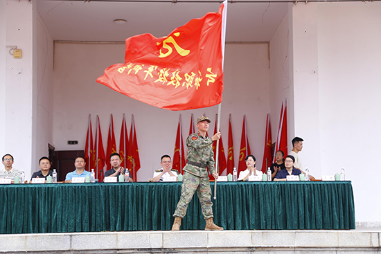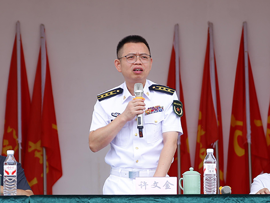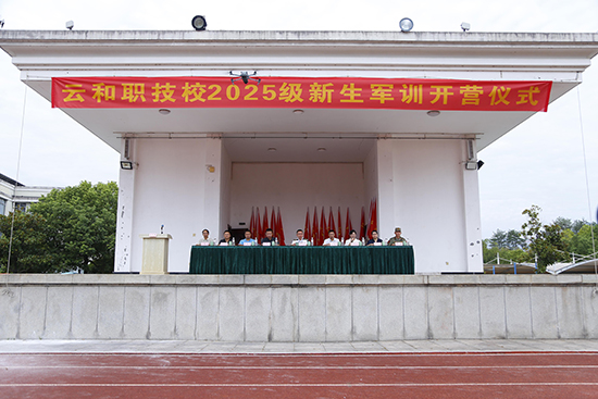 云和縣委常委、人武部政委許文金宣布云和職技校2025級(jí)新生軍訓(xùn)正式開營。