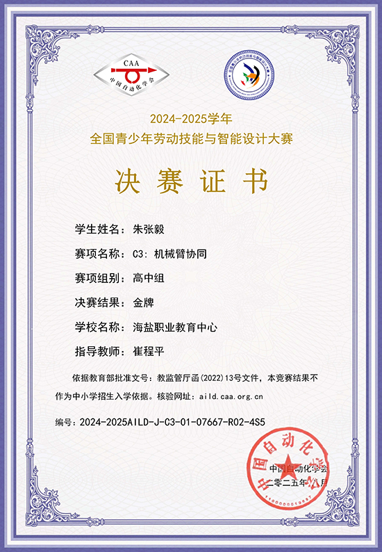 近日,2024—2025學(xué)年全國(guó)青少年勞動(dòng)技能與智能設(shè)計(jì)大賽總決賽在桐鄉(xiāng)烏鎮(zhèn)落下帷幕。海鹽職業(yè)教育中心智能制造與交通學(xué)部沈以軒、朱張毅兩位同學(xué),憑借扎實(shí)的專(zhuān)業(yè)功底和出色的賽場(chǎng)發(fā)揮,在AILD 智能設(shè)計(jì)大賽編程智控—機(jī)械臂協(xié)同(高中組)競(jìng)賽中脫穎而出,榮獲全國(guó)總決賽金牌。