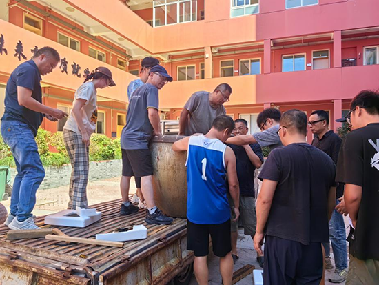 搬運現(xiàn)場,行政干部們二話不說,挽起袖子一起發(fā)力,或是扶穩(wěn)缸身,或是清理安置點。這里,沒有命令,沒有指派,只有默契與共識——這口缸,必須安穩(wěn)落地,就像龍職的精神,必須代代相傳。缸雖重,情更重。它不再只是一口缸,而是“龍職四見精神”的象征:見行動——人人伸一把手;見速度——迅速響應齊上陣;見成效——安全運抵新家;見品質(zhì)——安置得端莊穩(wěn)妥。
