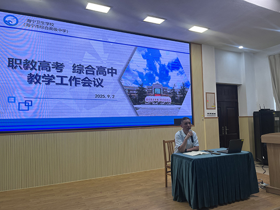 9月2日,海寧衛校(海寧市綜合高級中學)教務處組織召開職教高考和綜合高中教學工作會議,為新學期高職考備考與綜合高中辦學明確方向、細化舉措。校黨總支書記顧忠強、分管教學副校長沈孝麗、教務處處長李海偉及高考方向班級班主任、任課教師參會。