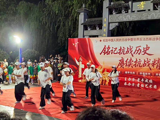 9月3日晚,安吉社區(qū)教育學院孝豐分院(孝豐成校)在孝子公園主辦 “銘記抗戰(zhàn)歷史 賡續(xù)抗戰(zhàn)精神” 文藝匯演,以歌舞、朗誦等豐富形式紀念抗日戰(zhàn)爭暨世界反法西斯戰(zhàn)爭勝利 80 周年,帶領現(xiàn)場觀眾重溫崢嶸歲月,緬懷革命先烈,傳承不朽的抗戰(zhàn)精神。