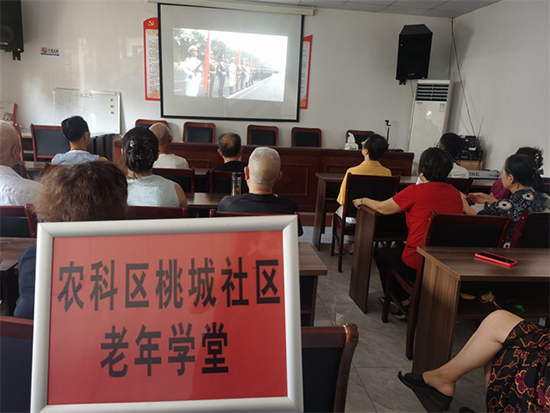 當(dāng)天上午,隨著直播畫面中雄壯的國(guó)歌奏響,老年學(xué)堂里瞬間安靜下來(lái),老人們紛紛挺直腰板,目光緊緊鎖定在屏幕上。當(dāng)受閱方陣邁著整齊劃一的步伐依次亮相時(shí),活動(dòng)室里不時(shí)響起陣陣掌聲。在眾多學(xué)堂中,長(zhǎng)樂(lè)社區(qū)老年學(xué)堂的氛圍尤為特殊——這里的村民們心中都揣著一份別樣的期待,因?yàn)樯鐓^(qū)村民毛立婷正是本次閱兵女民兵方陣的一員。?