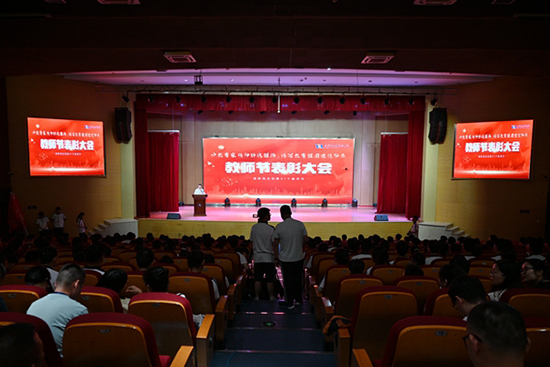 為慶祝第41個教師節,海職高舉辦表彰大會,以教育家精神鑄魂強師,譜寫教育強國建設華章。大會由黨委副書記、校長陸益飛老師主持。