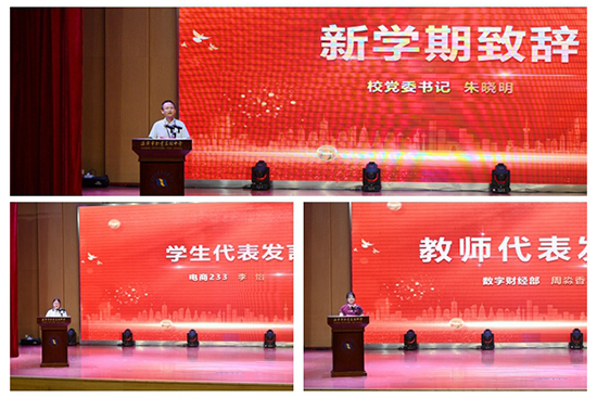 書記致辭。校黨委書記朱曉明老師首先對2025級新同學的到來表示了熱烈歡迎,緊接著回顧了學校過去一年在教學質量提升、專業升級、服務地方發展等方面的顯著成效,如在世界職業院校技能大賽總決賽爭奪賽中斬獲兩枚銀牌,思政教學能力大賽入圍國賽,教學成果獲省級獎項,2025屆高考本科上線率達 26.97%等。值此第41個教師節來臨之際,朱書記向全體教職工在教育教學、科研、管理、服務等各條戰線上的無私奉獻表示了真誠感謝,并對全體學生提出了三點建議:一是鑄牢鋼鐵信仰,以國家意志為人生坐標;二是鍛造高尚品格,以美好德行為致遠之楫;三是錘煉過硬本領,以善學精進為成長階梯。