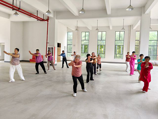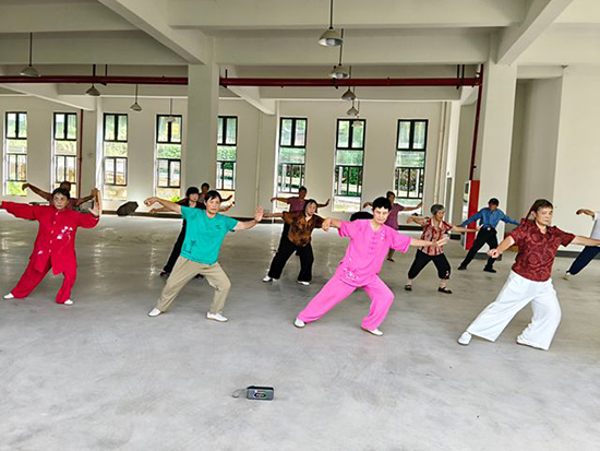 上午 9 時(shí),大里村集體廠(chǎng)區(qū)內(nèi),二十余名學(xué)員列陣而立。隨著舒緩的《太極韻》樂(lè)曲響起,他們抬手如行云流水,推手似柔中帶剛,一套 24 式太極拳打得氣韻貫通。這是上學(xué)期學(xué)習(xí)成果的展示現(xiàn)場(chǎng),68 歲的學(xué)員田蓮珍收勢(shì)時(shí)額角微汗,臉上卻漾著笑意:“練了一年,關(guān)節(jié)炎好多了,現(xiàn)在每天清晨都和老伙計(jì)們?cè)诖蹇趶V場(chǎng)‘切磋’。”?