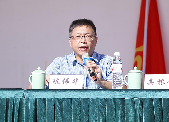 陳偉華書記代表學校向辛勤付出的教官、班主任和工作人員致以誠摯的問候,向敢于吃苦、順利完成軍訓任務的全體同學表示熱烈的祝賀。他希望同學們一要把“軍訓精神”刻進日常,做“自律自強的追光者”;二要把“家國情懷”融進血脈,做“志存高遠的奮斗者”;三要把“溫暖善意”傳遞下去,做“心懷感恩的踐行者”,將軍訓中頑強拼搏精神、堅持堅守的韌性、紀律嚴明的作風、團結(jié)互助的品德帶到今后的學習生活中去。
