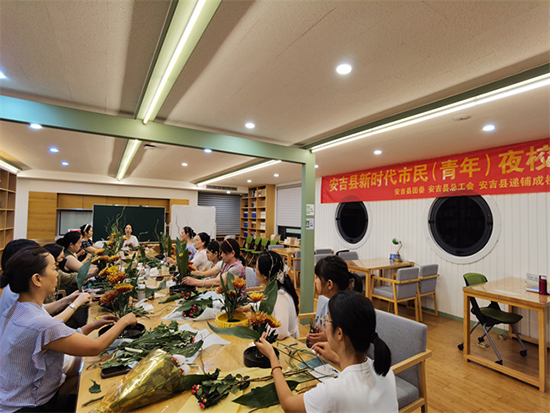 9月7日晚,夜幕降臨,安吉縣社區(qū)教育學(xué)院遞鋪分院的校園內(nèi)卻依舊熱鬧非凡,新時(shí)代市民(青年)夜校如期開(kāi)課,為當(dāng)?shù)厍嗄耆后w帶來(lái)了一場(chǎng)充實(shí)又有趣的學(xué)習(xí)盛宴。本次夜校精心開(kāi)設(shè)了傳統(tǒng)插花、葫蘆絲、抖音直播三門(mén)特色課程,吸引了來(lái)自安吉縣各個(gè)村、鎮(zhèn)、社區(qū)的80多位學(xué)員踴躍參與,大家懷揣著對(duì)知識(shí)與技能的渴望,共同開(kāi)啟了當(dāng)晚的學(xué)習(xí)之旅。