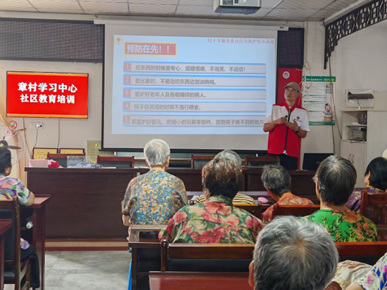 9月8日上午,安吉縣章村鎮(zhèn)章村村文化禮堂內(nèi)座無虛席,67名學(xué)員齊聚一堂,參加由安吉縣社區(qū)教育學(xué)院章村學(xué)習(xí)中心與章村村幸福鄰里聯(lián)合組織的氣道異物梗阻現(xiàn)場急救培訓(xùn),安吉縣紅十字會會員丁柏偉擔(dān)任主講。
