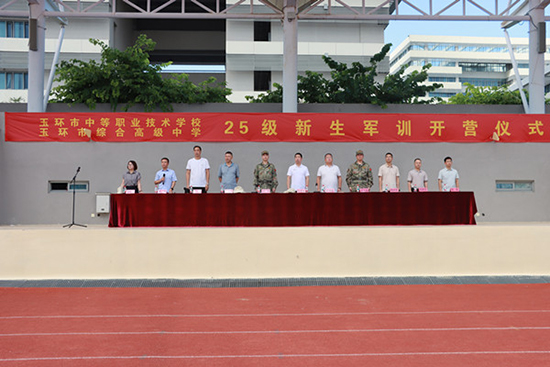 9月7日上午,玉環(huán)市中等職業(yè)技術(shù)學(xué)校、玉環(huán)市綜合高級中學(xué)2025級新生軍訓(xùn)開營儀式在學(xué)校田徑場隆重舉行。校黨總支書記張昌森,校長吳德章,海山鄉(xiāng)武裝部部長徐偉,楚門鎮(zhèn)人武部副部長趙冰峰,副校長陳順宇、顏申君、吳永勝、張炳良、金松、楊帆,工會主席華平飛等校領(lǐng)導(dǎo)參加。儀式由金松主持。
