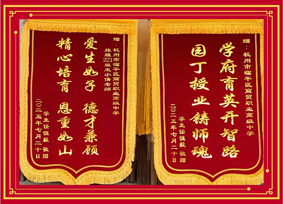 “學(xué)府育英開(kāi)智路,園丁授業(yè)鑄師魂”,贈(zèng)給學(xué)校的錦旗上這樣寫道。另一面送給班主任的錦旗則贊譽(yù):“愛(ài)生如子,德才兼?zhèn)洌痪呐嘤髦厝缟?rdquo;。錦旗雖輕,情誼卻重,這一刻,所有的辛苦付出都化為了欣慰與自豪。