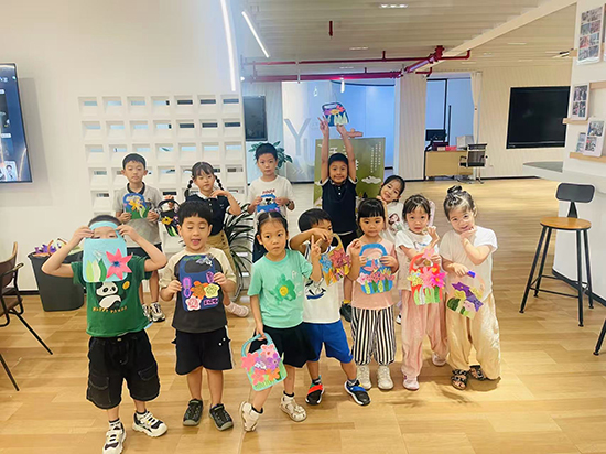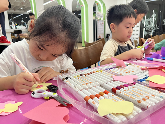 “小朋友們,試著和爸爸媽媽分工,你選花瓣顏色,讓爸爸媽媽幫你扶著剪刀好不好?”虞老師以引導(dǎo)式提問開啟課堂,巧妙化解部分家長(zhǎng)“代勞式幫忙”的誤區(qū)。講解制作步驟時(shí),她不僅示范裁剪、粘貼的技巧,更注重引導(dǎo)親子觀察彼此的動(dòng)作、傾聽對(duì)方的想法——有的孩子堅(jiān)持要給花瓣粘上“星星裝飾”,家長(zhǎng)從最初的“覺得麻煩”轉(zhuǎn)變?yōu)槟托呐浜稀Un堂上,膠水粘到指尖的小插曲、花瓣位置擺放的小討論、完成作品時(shí)的歡呼聲,交織成最溫暖的家庭互動(dòng)圖景。