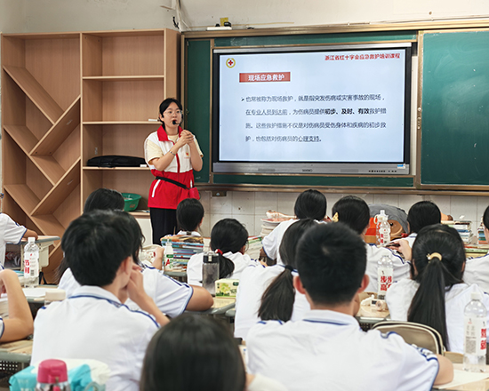 近日,衢州第二中專、江山綜合高中聯合江山市紅十字會,為全體高一新生開展了一場為期兩天的應急救護培訓。24個班級、1000多名同學踴躍參與,學習急救知識、掌握救命技能,以扎實的學習成果通過考核,正式成為“紅十字救護員”。