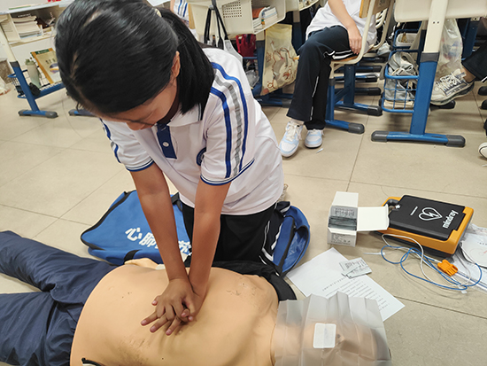 本次培訓為期兩天,課程設置科學嚴謹,內容涵蓋紅十字運動基礎知識、心肺復蘇(CPR)、自動體外除顫儀(AED)使用、氣道異物梗阻處理以及創傷包扎等急救技能。培訓采用理論講解與實操練習相結合的方式,確保每位學生都能掌握核心救護技能。
