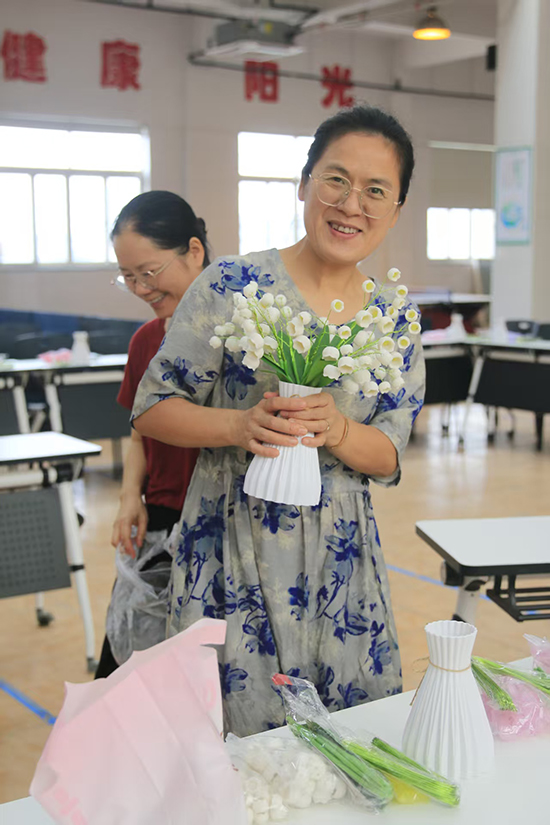 活動現場特別設計了兩大互動區域:“趣味滾滾樂”借助飲料罐與臺球桌,讓老師們在輕松挑戰中贏取精致甜品,舒緩壓力、收獲驚喜;“鈴蘭花手工DIY”則準備了豐富的材料包,在工作人員指導下,老師們親手制作象征“幸福歸來”的鈴蘭花,賦予節日以手作的溫度與儀式感。每一份自帶心意的手工作品,都可隨身攜帶,成為這個教師節的獨特紀念。