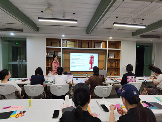 本次活動的核心亮點,在于邀請到了安吉縣非遺剪紙項目的核心傳承人——蔣娟老師親自授課。作為深耕剪紙領域多年的資深匠人,蔣娟老師不僅擁有精湛的剪紙技藝,更擅長將非遺文化的內涵與通俗化的教學方式相結合,讓零基礎的學員也能快速入門?;顒右潦?,蔣娟老師先以生動的語言為學員們講解了安吉剪紙的歷史淵源:從舊時民間節慶時的窗花、喜花,到如今成為省級非遺項目的文化傳承,每一段故事都讓學員們對這門古老技藝多了一份敬畏與好奇。隨后,她還現場展示了多幅經典剪紙作品,細膩的線條、鮮活的形象,瞬間點燃了學員們的創作熱情。