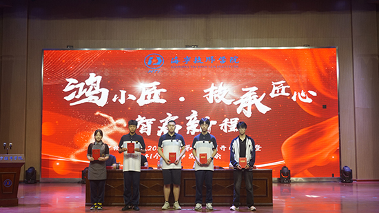 學生代表22級機電一體化專業李之源同學——全國大學生先進成圖技術與產品信息建模創新大賽一等獎獲得者,分享了他的技能成長經歷,并倡議同學們以“問題導向”思維、“終身學習”能力和“沈鴻精神”為指引,在技能報國的道路上書寫精彩人生。