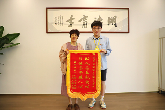為表達感激之情,鄒女士憑借她在公交車上拍下的側臉照片多方打聽,最終聯系到鄞州職高,并親自送來了錦旗。“我當時真的非常感動,現在這樣的好孩子太少了,我一定要找到他,向他和他的學校表達我的謝意。”鄒女士握著章同學的手,動情地說。