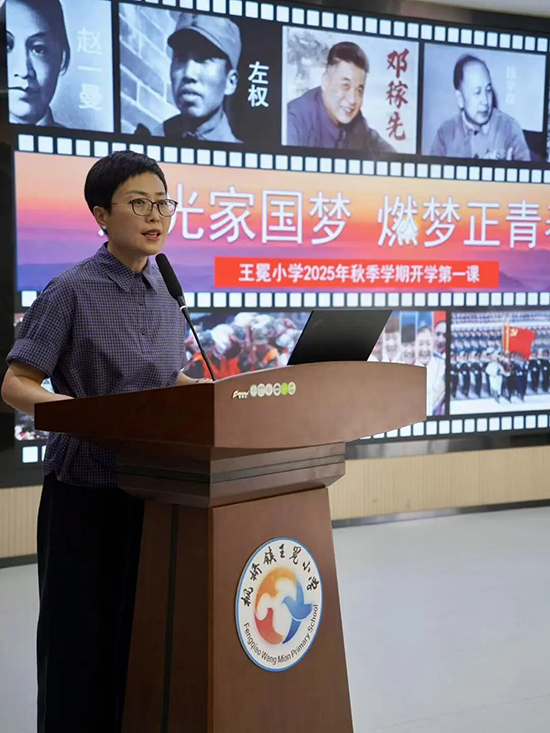校長趙娜以《追光家國夢 燃夢正青春》為題講授開學第一課。趙娜結合抗戰歷史與新時代少年的使命,勉勵學生們既要銘記先烈們用熱血鑄就的民族精神,又要以青春之我、奮斗之我,將個人成長融入家國夢想,為新學期注入了溫暖而堅強的力量。