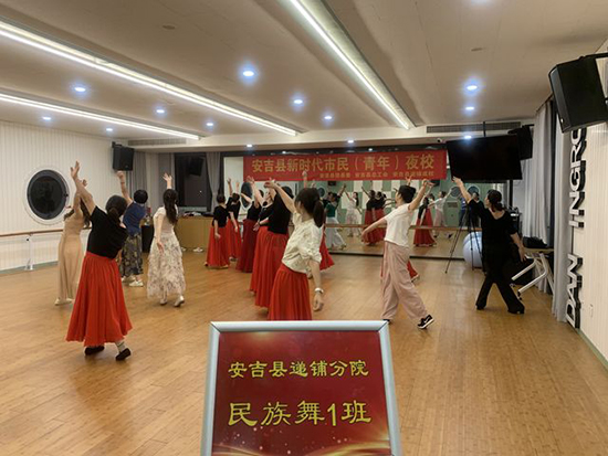 9月14日晚,安吉縣社區教育學院遞鋪分院的舞蹈教室內燈火通明,樂聲悠揚。31位來自不同行業的學員齊聚一堂,在專業舞蹈老師潘虹的帶領下,沉浸于一場精彩紛呈的民族舞教學體驗之中。