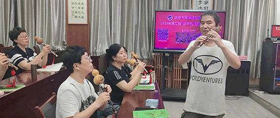 簡短而熱烈的開班儀式后,首堂課程正式開啟。本次培訓(xùn)特邀浙江省民族管弦樂學(xué)會笛子藝術(shù)研究會理事、溫州市笛簫學(xué)會副會長、溫州雅馬哈交響管樂團長笛演奏員、瑞安市城市學(xué)院兼職教師、瑞安樂團笛簫首席陳光煌老師授課。陳老師首先細心觀察并聆聽了每位學(xué)員的演奏,全面了解大家的演奏基礎(chǔ),隨后針對坐姿、葫蘆絲持握方法及指法進行了逐一糾正與指導(dǎo),幫助學(xué)員夯實基礎(chǔ)、規(guī)范動作。課程最后,在陳老師的帶領(lǐng)下,學(xué)員們共同合奏了經(jīng)典曲目《月光下的鳳尾竹》,悠揚樂聲回蕩在整個教室。