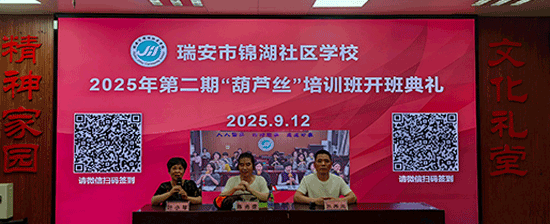 9月12日晚,瑞安市錦湖社區(qū)學(xué)校文化大禮堂內(nèi)燈火通明、歡聲笑語,2025年第二期葫蘆絲培訓(xùn)班開班典禮在此隆重舉行。眾多葫蘆絲愛好者踴躍參與,共同見證這一溫馨而莊重的時刻。典禮由班長葉小琴主持。