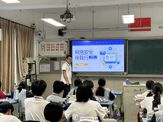 各班召開“網絡安全伴我行”主題班會,討論宣傳網絡安全知識,提高學生網絡安全意識,增強識別和應對網絡危險的能力,加強學生日常網絡安全教育和管理工作,倡導文明上網、健康用網的理念,營造健康文明的網絡環境。各班組織學生觀看網絡安全教育視頻。