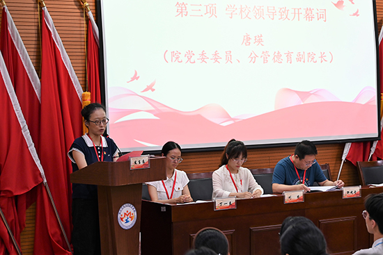院黨委委員、分管副院長唐瑛致開幕詞,唐瑛副院長向與會人員表示熱烈的歡迎和衷心的感謝,對臨平學院青年們的努力付出表示肯定,希望新一屆委員會成員能夠以飽滿的政治熱情、認真負責的工作態度,不辜負廣大團員青年的重托,砥礪前行,并預祝大會圓滿成功。