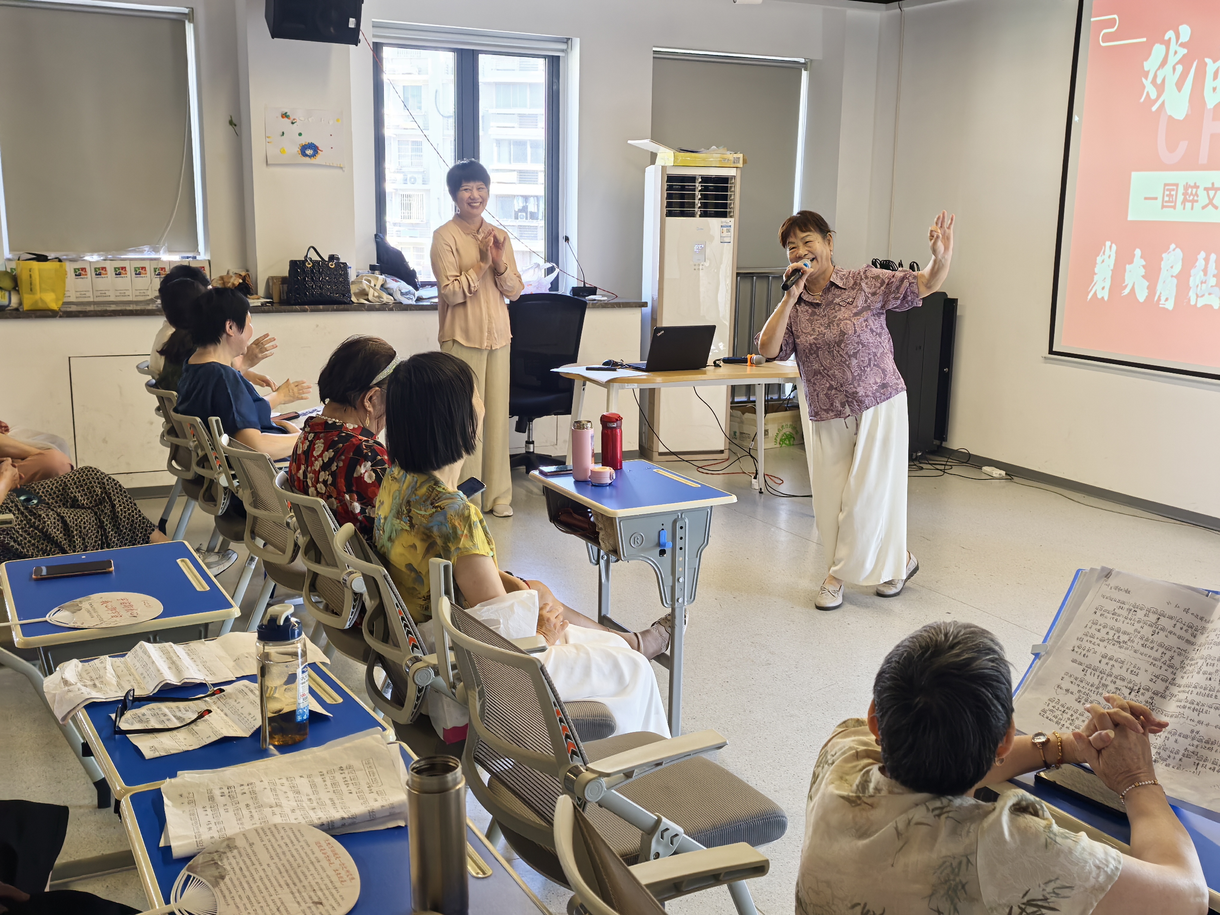 隨著秋季班開班,越劇班迎來了新老學(xué)員的融合。老學(xué)員帶著春季班的學(xué)習(xí)成果,熱情地幫助新學(xué)員融入集體;新學(xué)員則帶著期待和熱情,為越劇班注入新鮮血液。這種代際傳承的和諧畫面,正是社區(qū)文化建設(shè)最珍貴的成果。