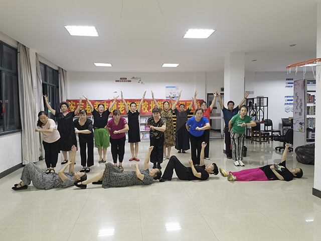排練現(xiàn)場(chǎng),學(xué)員們雖已年過(guò)花甲,但熱情絲毫不減。伴隨著悠揚(yáng)的紅色樂(lè)曲,大家手持道具,邁著整齊的步伐,在裘美芳老師的口令下反復(fù)打磨每一個(gè)動(dòng)作、每一個(gè)眼神。裘美芳老師憑借豐富的教學(xué)經(jīng)驗(yàn)和對(duì)紅色文化的深刻理解,耐心地為學(xué)員們糾正姿態(tài)、講解動(dòng)作背后的紅色內(nèi)涵:“這個(gè)抬手的動(dòng)作,要像革命先輩舉起旗幟那樣堅(jiān)定;這段轉(zhuǎn)身的銜接,要體現(xiàn)出團(tuán)結(jié)一心、奮勇向前的精神。”
