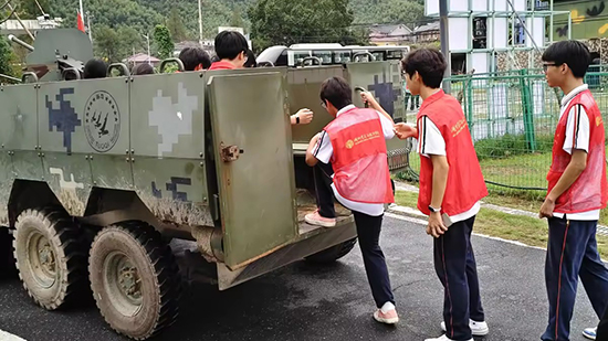 在戎創軍校訓練場上,同學們體驗了模擬野戰炮射擊、火箭發射觀摩、裝甲車乘坐等軍事項目。在教官的指導下,大家認真學習軍事知識,親自操作體驗,感受國防科技的進步與強大。“預備,放!”隨著口令下達,模擬炮聲響徹訓練場。體驗現場,錢同學表示:“這次體驗讓我深刻體會到強國必須強軍,軍強才能國安的道理。”