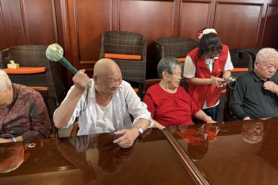 不到一個小時,老人們陸續完成了自己的作品。他們迫不及待地拿起親手制作的艾草錘,輕輕敲打著肩膀和手臂,相互展示、比較,活動室瞬間變成了一個熱鬧的“理療現場”。爺爺奶奶們說:“聞著這個艾草味,感覺渾身都舒坦了。關鍵是孩子們有這份心,陪我們聊天、做手工,比什么都開心。”