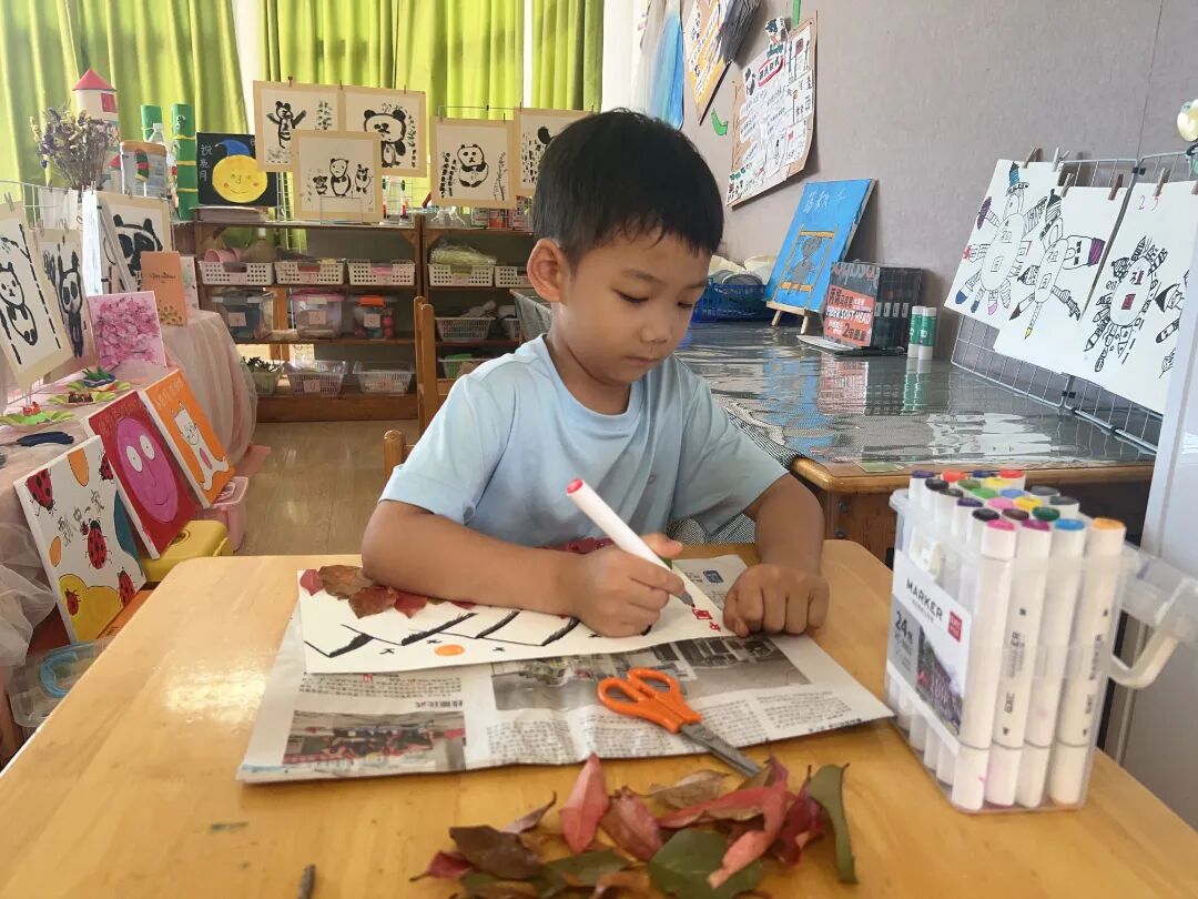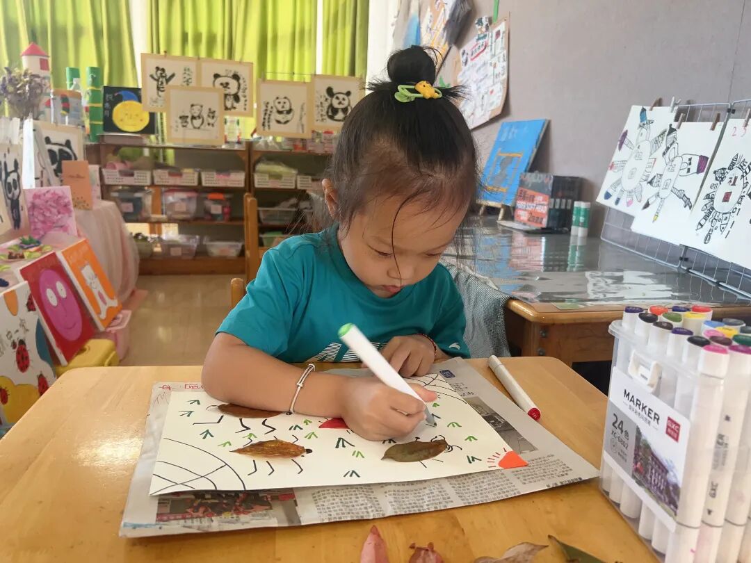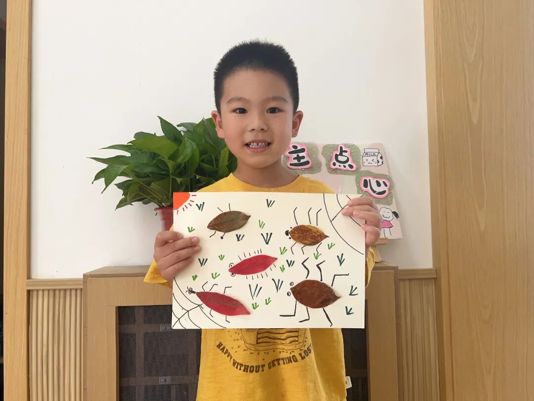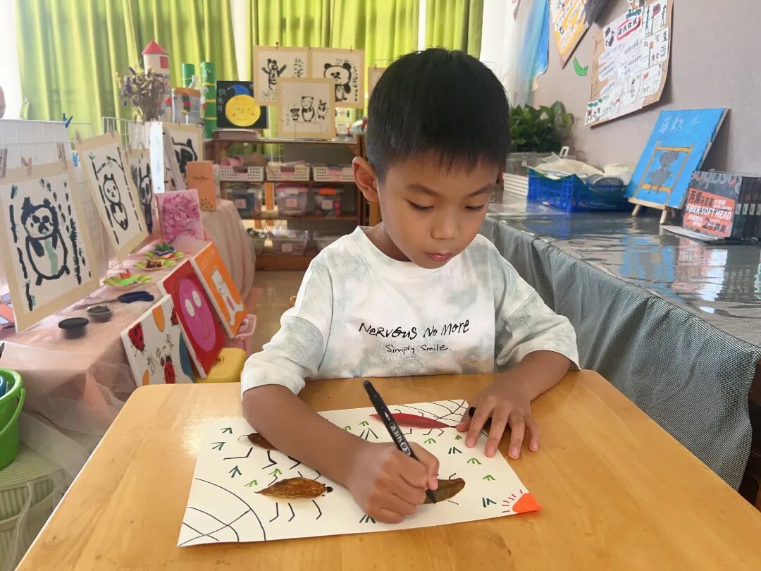 秋葉感悟。秋天的大自然到處都是美景,來一場美上加美的活動(dòng)吧。用樹葉拼貼圖案,不乏藝術(shù)享受之美。各色各樣的樹葉,在幼兒們的精挑細(xì)選下來到手中,坐在教室,對這些不同色彩、形狀的樹葉拼貼組合,不一會(huì)兒就變成了一幅幅美麗的畫。樹葉拼貼畫,讓幼兒們對植物有了更深的觀察和記憶,創(chuàng)意拼貼,一幅幅畫展示了幼兒們的想象力及創(chuàng)造力。