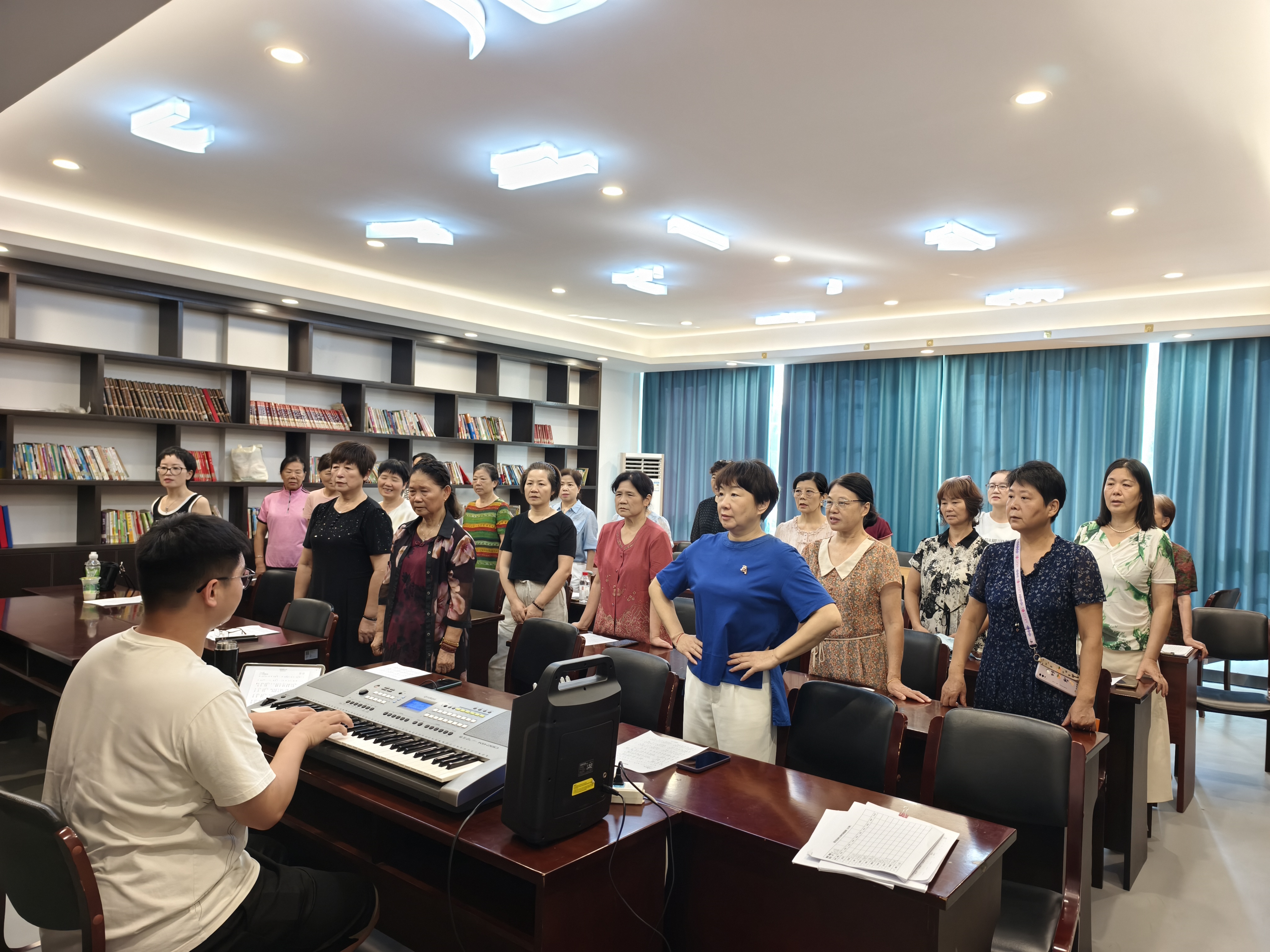 “大地回春,落櫻灑滿希望的步道……”還未走近聲樂班的教室,一陣陣激昂嘹亮的歌聲便已傳來。教室內,叔叔阿姨們手持歌譜,在聲樂小蔡老師的指導下,正全情投入地學唱本學期的重點曲目——《潮涌浦沿》。這首歌唱出了浦沿街道的發展變遷,里面的一段家鄉話朗誦“浦沿浪 浦沿浪,鯰魚嘴里撈白條。浦沿浪 浦沿浪,浦師傅手藝呱呱叫……”更是唱出了居民們對家鄉的深情與自豪。